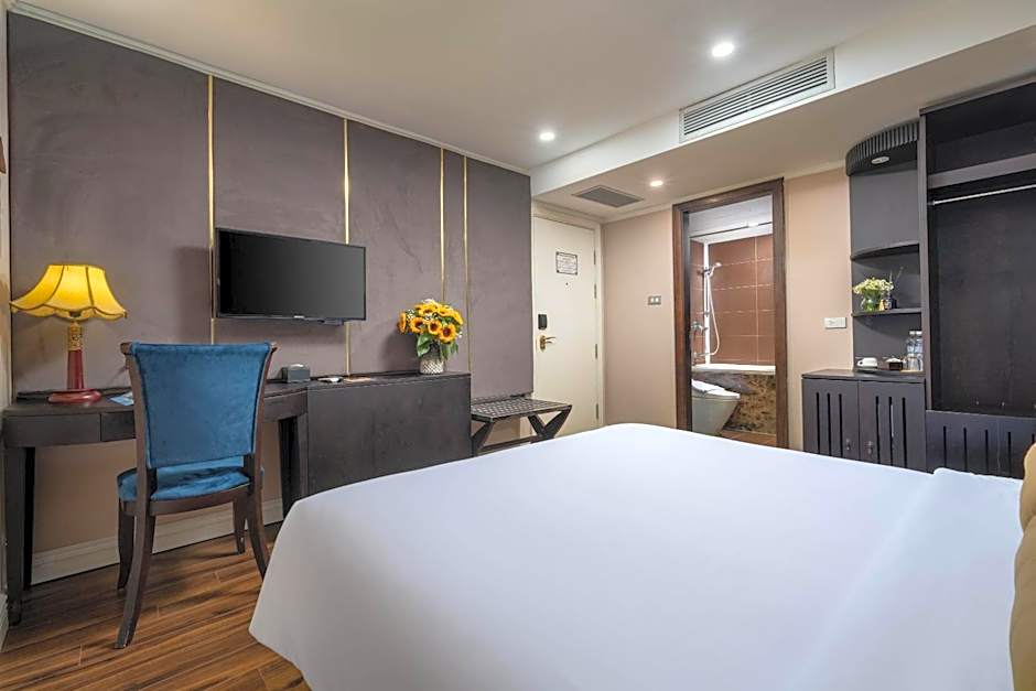 SUITE CITY VIEW WITH BATHTUB is 323 square feet and includes either a double bed 131-150 width or a single bed 80-130 width plus desk, hairdryer, safe, and slippers.